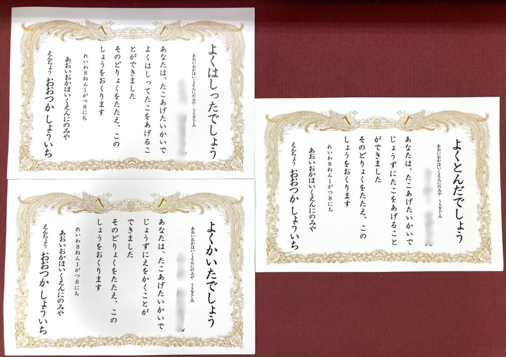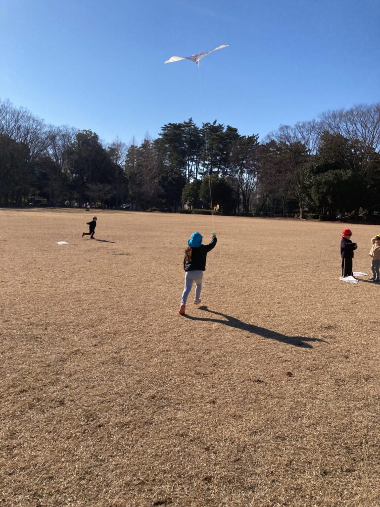 凧揚げ大会 1月8日(木)は洞峰公園にて凧揚げ大会を行いました。 今年も晴天に恵まれ、子ども達は元気いっぱいに走り回っていました😊 風が少なかったものの、走ると風に乗って凧がうまく揚がりました! 園長先生から賞状も貰い、楽しいイベントになりました✨