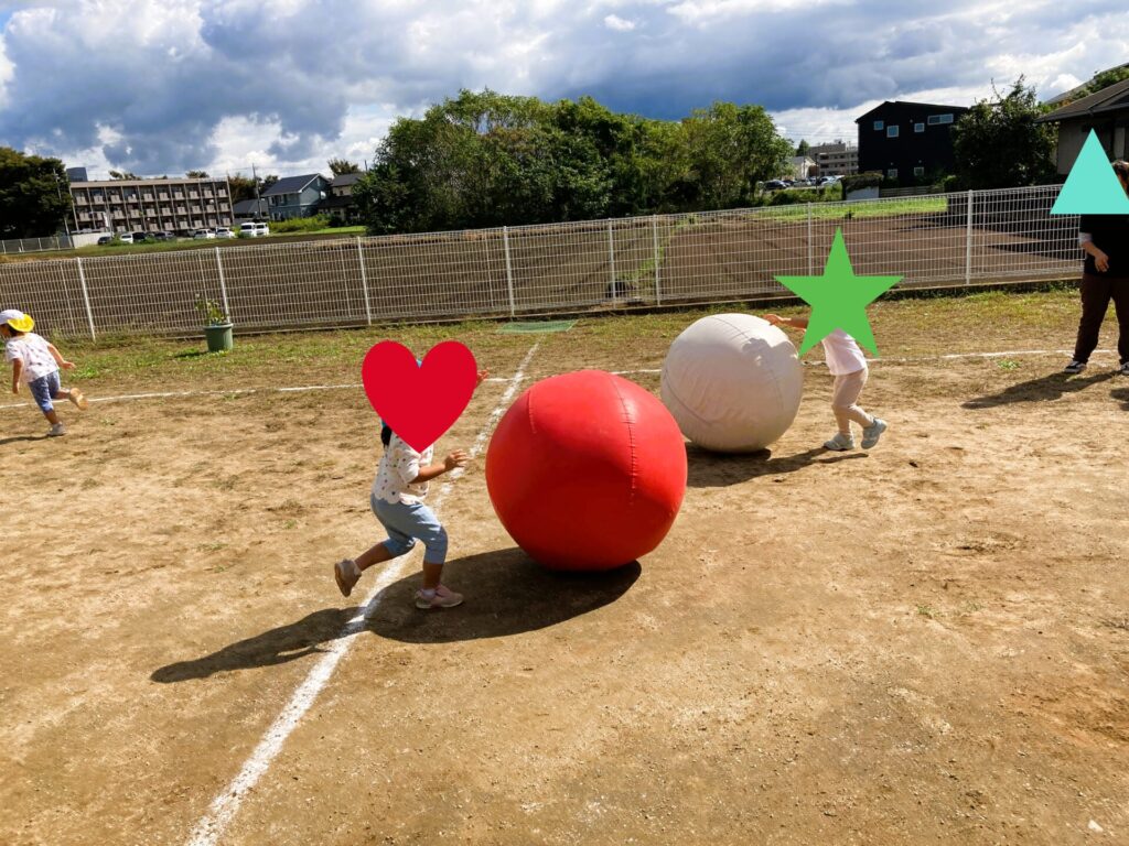 全員リレーに始まり、大玉転がし、玉入れ、しっぽ取り、つなひきと盛りだくさんな内容でした♪