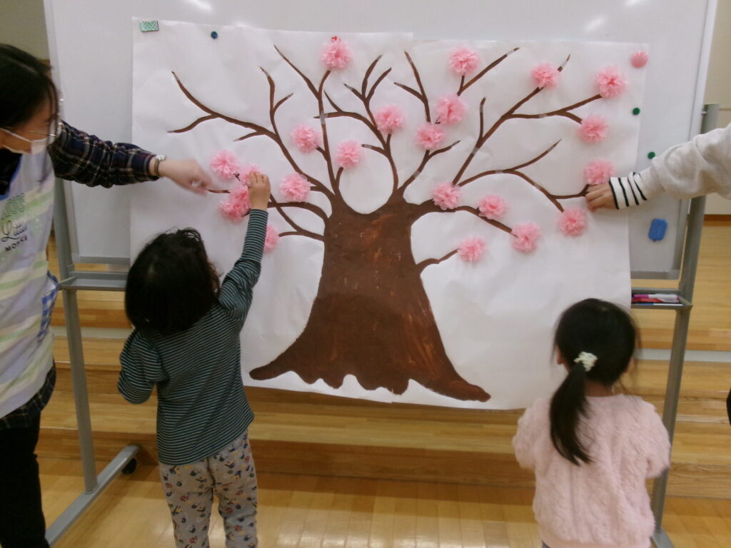 楽しそうにお花を探してくれて、綺麗な桃の木が完成しました🎎🌸