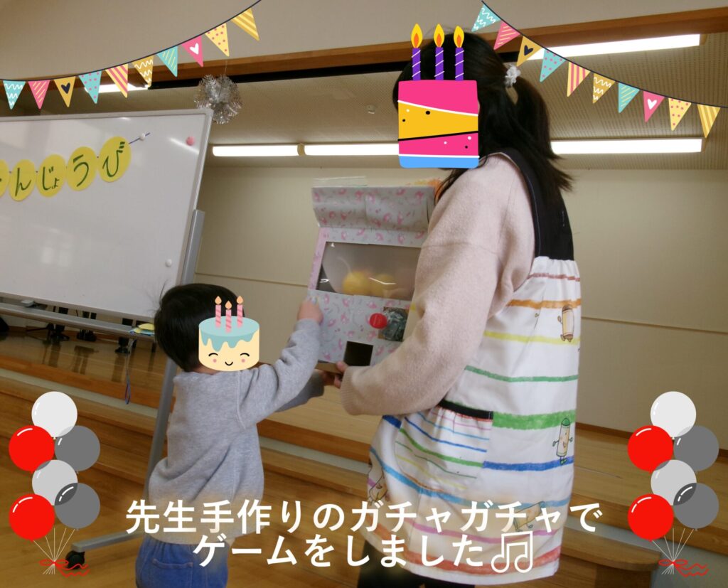 その後みんなでお誕生日の歌を贈り、先生手作りのガチャガチャを回して遊びました🥰