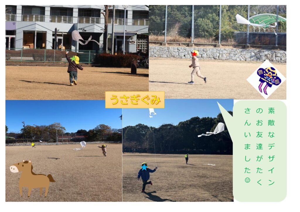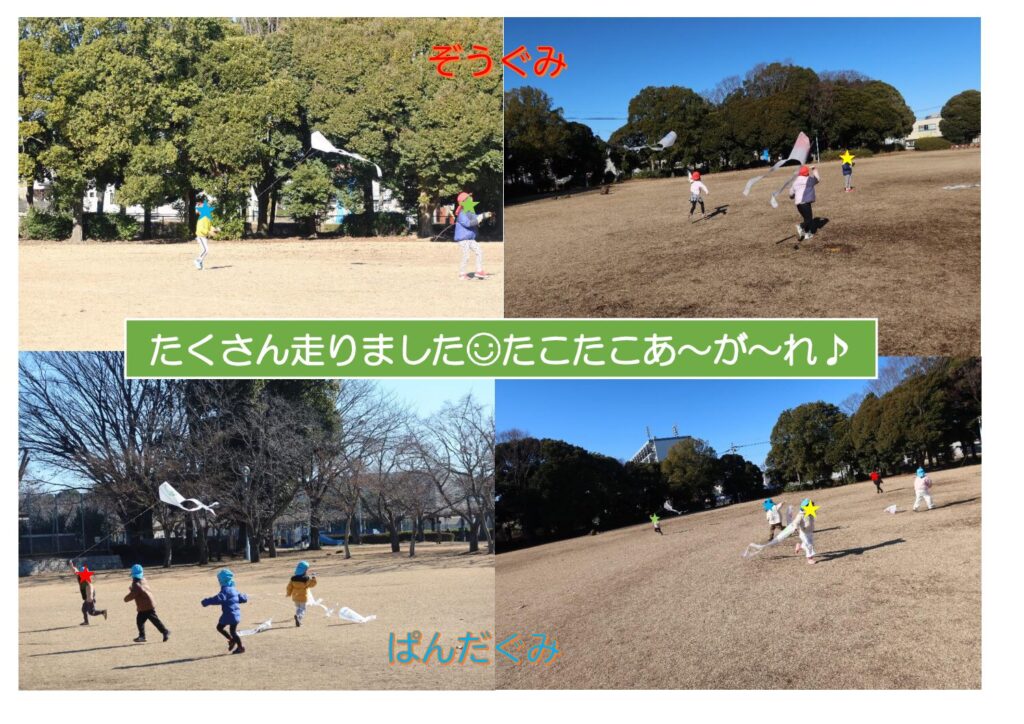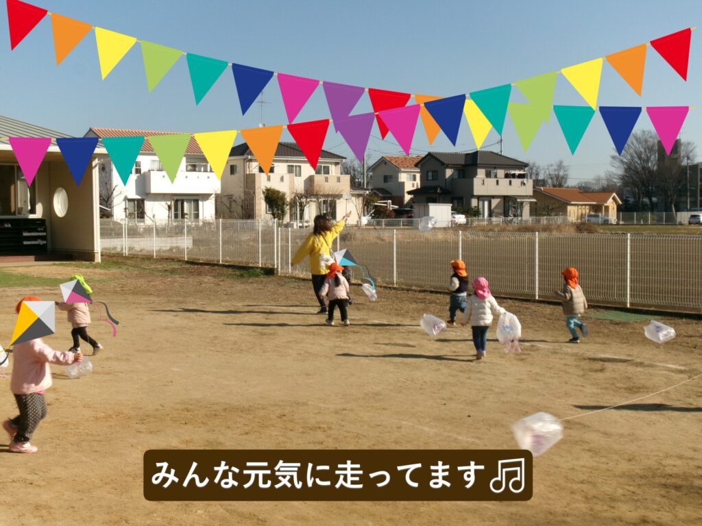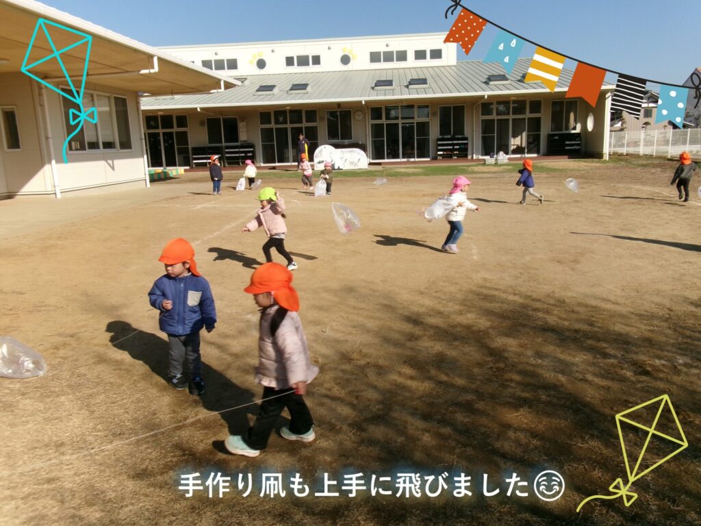 3.4.5歳児は公園まで移動し、未満児は園庭で凧揚げ大会を行いました🏃