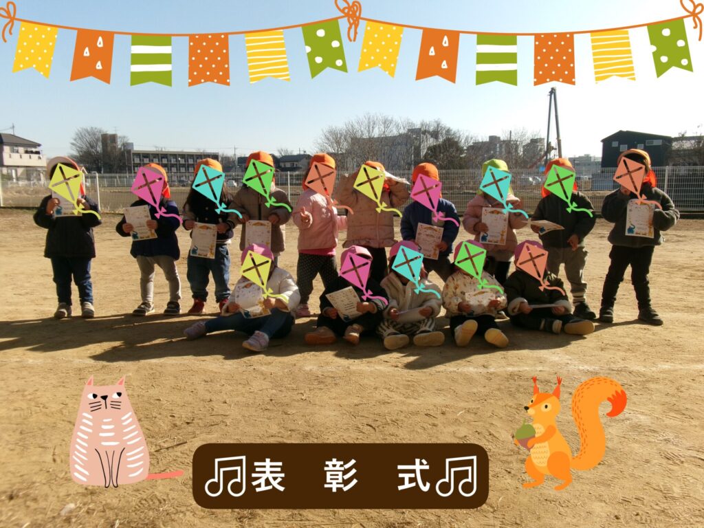 凧揚げ大会の後は表彰式も行い、園長先生から賞状をもらいました🎵
